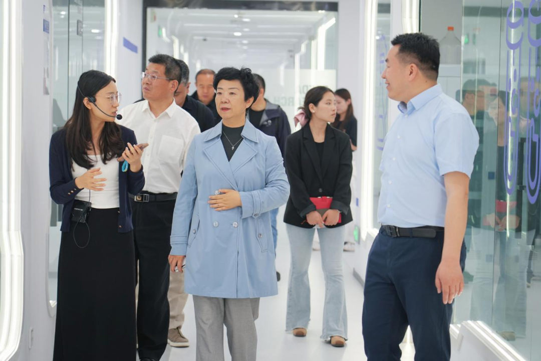 调研组一行首先参观了福瑞达世界美妆科技馆、化妆品透明工厂、研发中心实验室及集团总部展厅。作为国内化妆品行业的头部企业,福瑞达生物股份依托“妆药同源”的科研优势、品牌优势及产业协同优势,在玻尿酸、重组胶原蛋白等化妆品原料、功效性护肤品开发等领域取得显著成果。苏磊红局长详细询问了企业在原料提取工艺、功效验证、质量管控等方面的技术突破,并对透明工厂全过程智能化、数字化、绿色化管理表示高度认可。